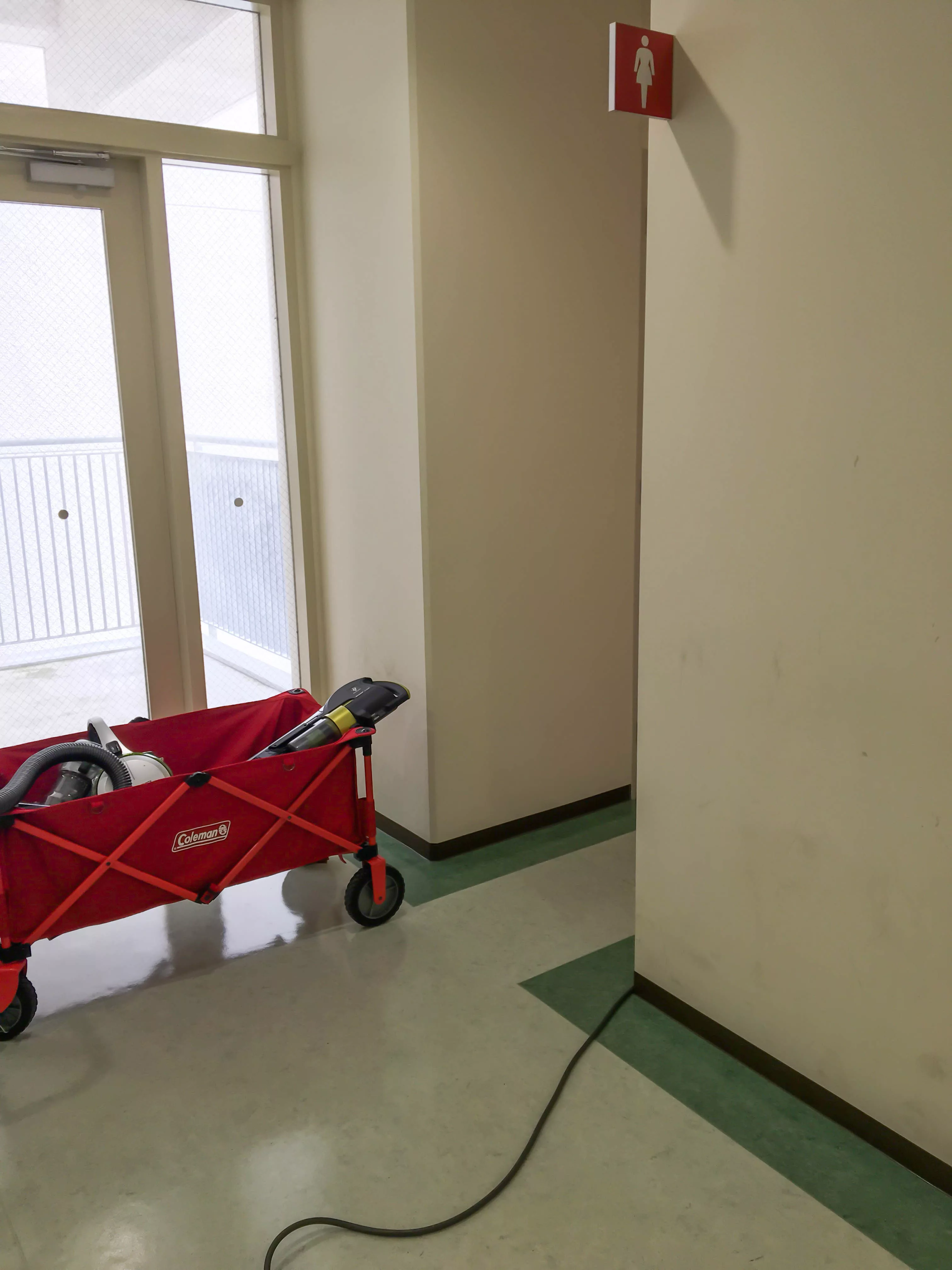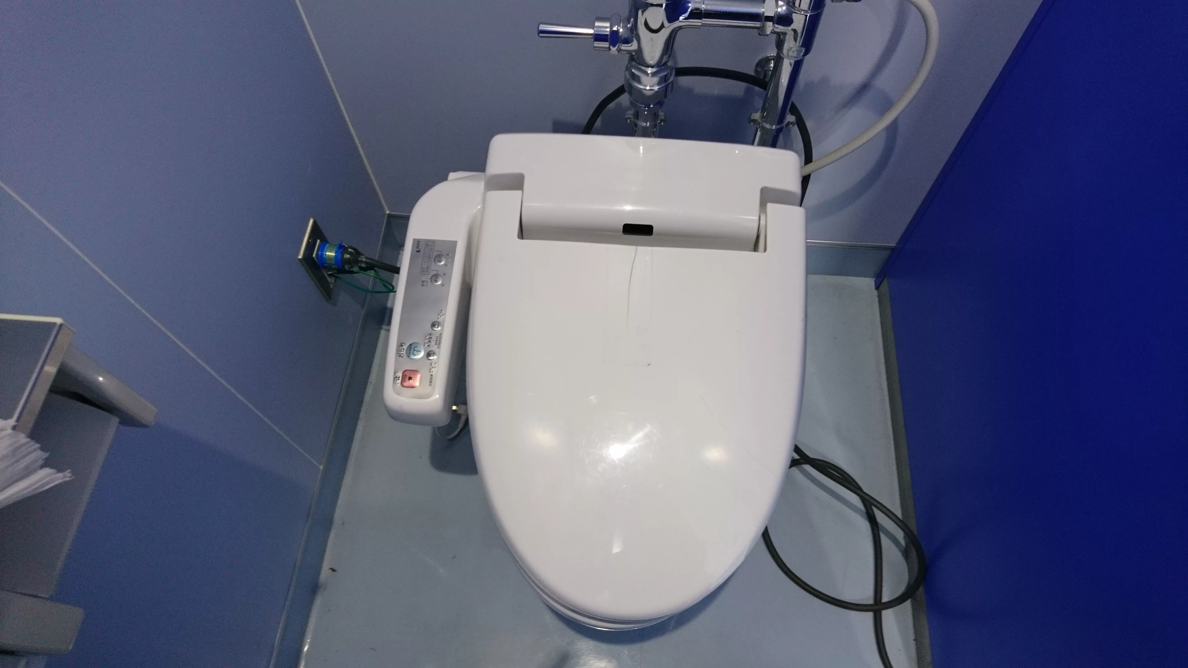 緊急的な対策でしたが、それぞれ男子トイレ・女子トイレのウォシュレットから電源を拝借することになりました。