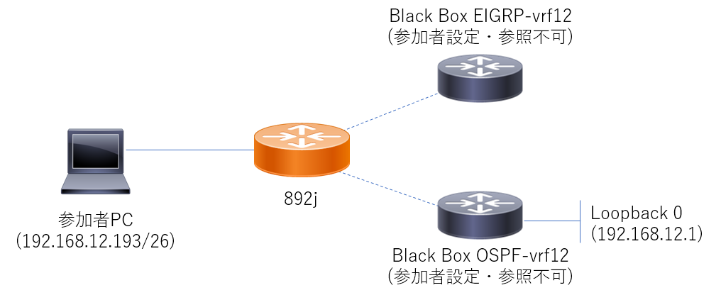 今回、参加者側とLoopBack側ではルーティングプロトコルが使用されているため