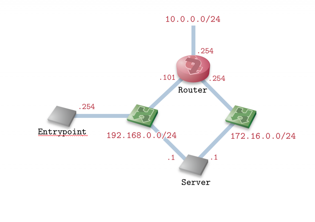 このネットワークでServerからRouterにpingを実行した際に、172.16.0.254からは応答がありましたが、10.0.0.254からは応答がありませんでした。