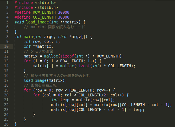 以下はC言語で書かれたAさんの左右反転するための擬似コードです。