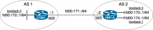 router bgp 1 no bgp default ipv4-unicast bgp router-id 1.1.1.1 neighbor fd00:173::1 remote-as 2 address-family ipv6 unicast neighbor fd00:173::1 activate