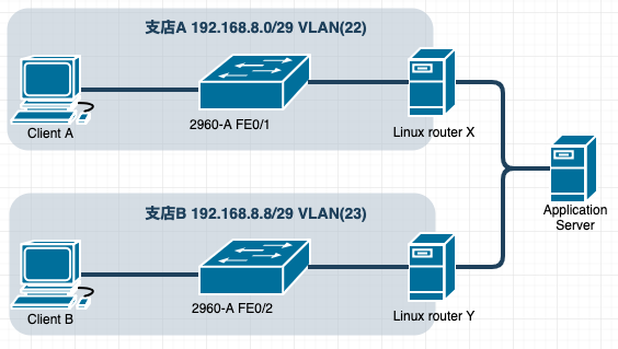 # # 経路追加 # route add -net 192.168.8.8 netmask 255.255.255.248 gw 192.168.8.18 # # 永続化 # cat /etc/network/if-up.d/branch-b-routing #!/bin/sh /sbin/route add -net 192.168.8.8 netmask 255.255.255.248 gw 192.168.8.18