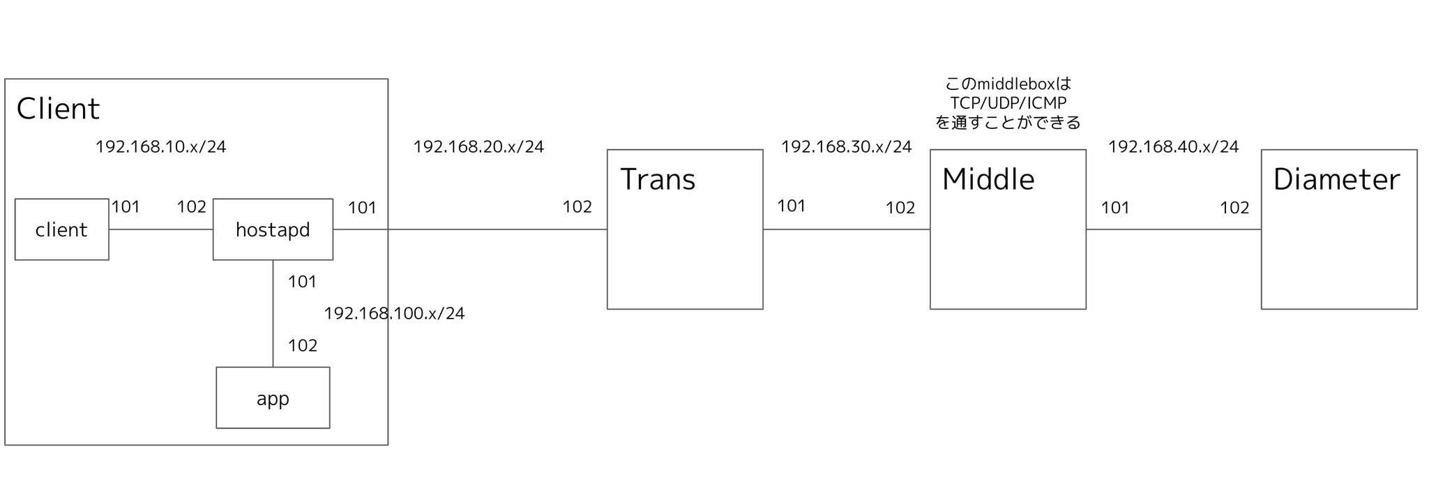 (ちなみに余談ですが今回問題で使った freeDiameter はなんと国産のソフトウェアなんですね、ryu, gobgp, zebra などネットワークに関する重要なソフトは日本発が多くて嬉しいなと思いました。)